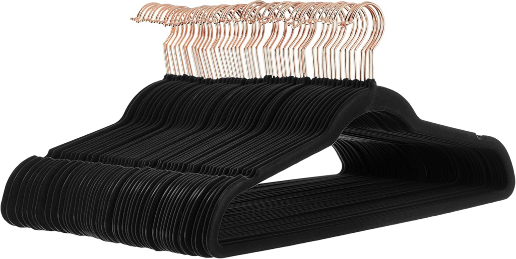 If you’re curating a wardrobe you want to feel good wearing not just storing the Amazon Basics Slim Velvet Non-Slip Suit & Clothes Hangers (Black/Rose Gold – Pack of 50) are hard to beat for their price point, performance, and closet impact. They excel in both functionality and aesthetic appeal, turning closet organization from a chore into a design upgrade.