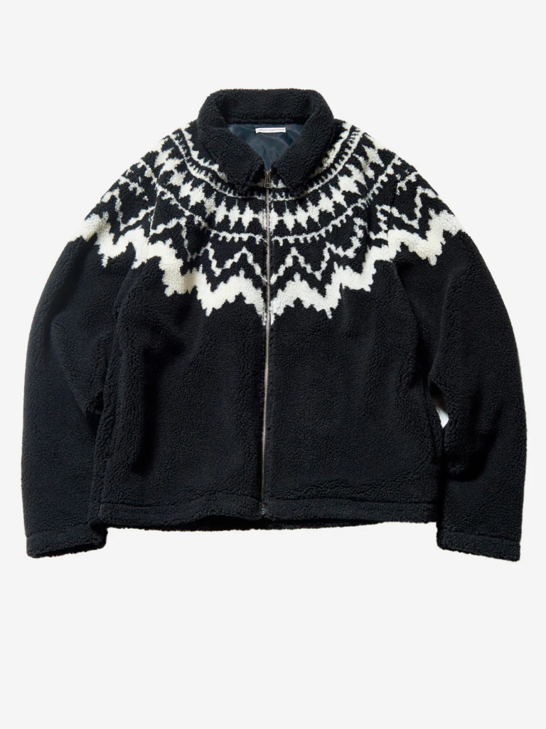 • Material: Crafted with high-quality sherpa fabric, the jacket offers an ultra-soft texture that wraps you in warmth. The jacquard design adds an artisanal touch, elevating the overall aesthetic.