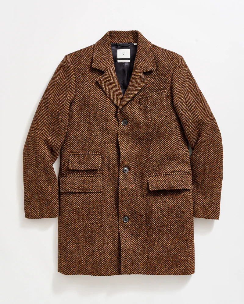 Crafted from a premium wool blend, the Herringbone Astor Coat is designed to provide warmth without sacrificing breathability. The fabric’s natural insulating properties make it ideal for chilly days, while its soft texture ensures all-day comfort.