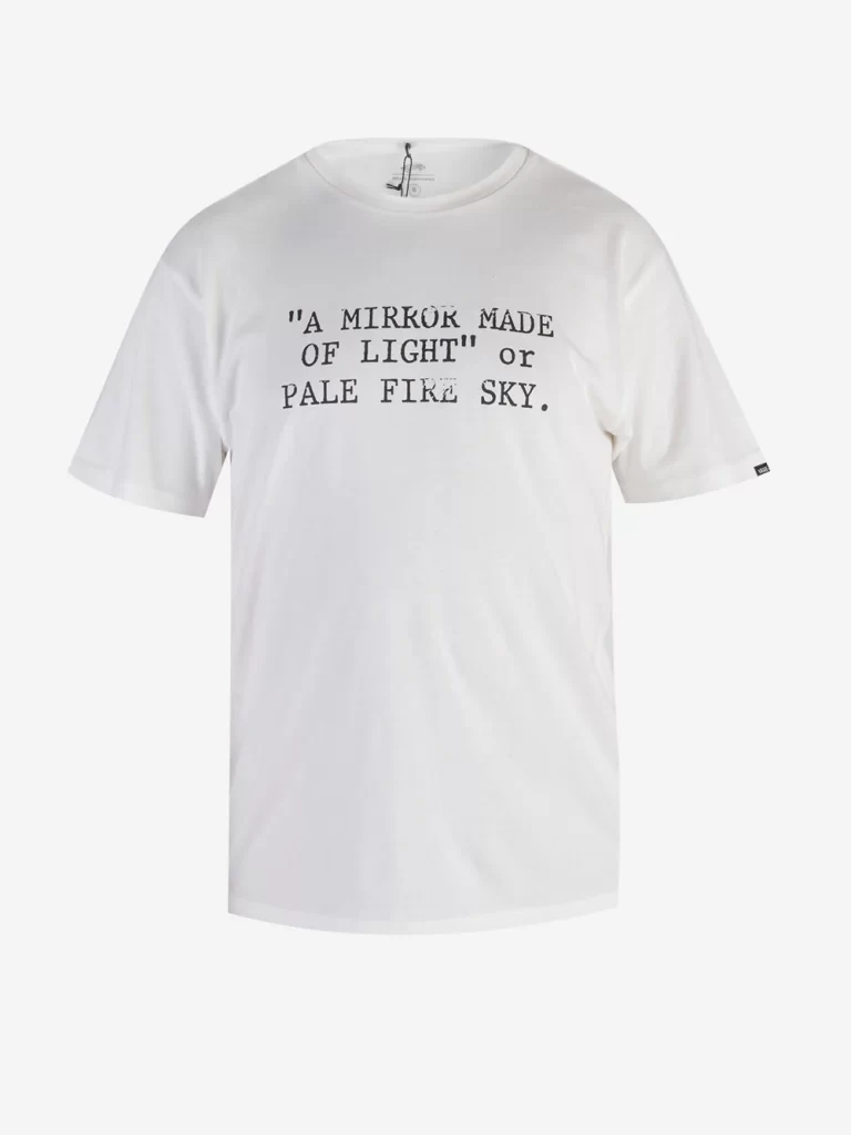 At first glance, the T-shirt’s clean, white canvas serves as a backdrop for Klincewicz’s signature artistic touches. Subtle yet impactful, the design elements include abstract prints and handwritten text that offer a glimpse into the artist’s mind. This T-shirt is not just a piece of clothing but a wearable piece of art.
